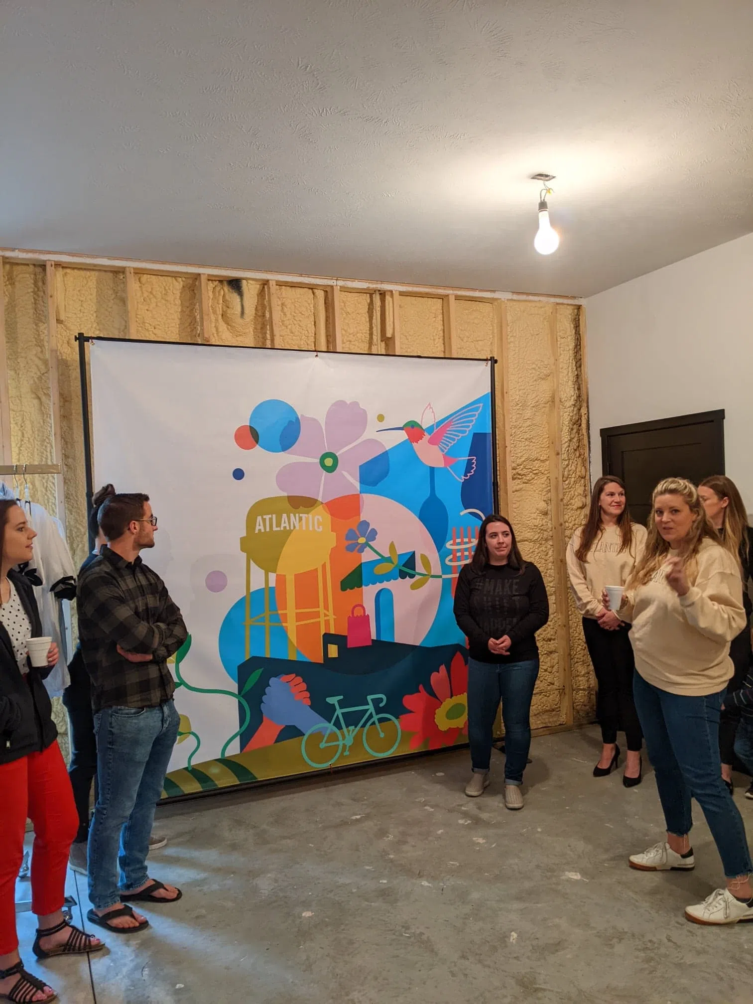 (Atlantic) The Atlantic Area Chamber of Commerce Ambassadors held a ribbon cutting this morning for SHIFT ATL’s Airbnb space in the upper story of the old Telegraph building.