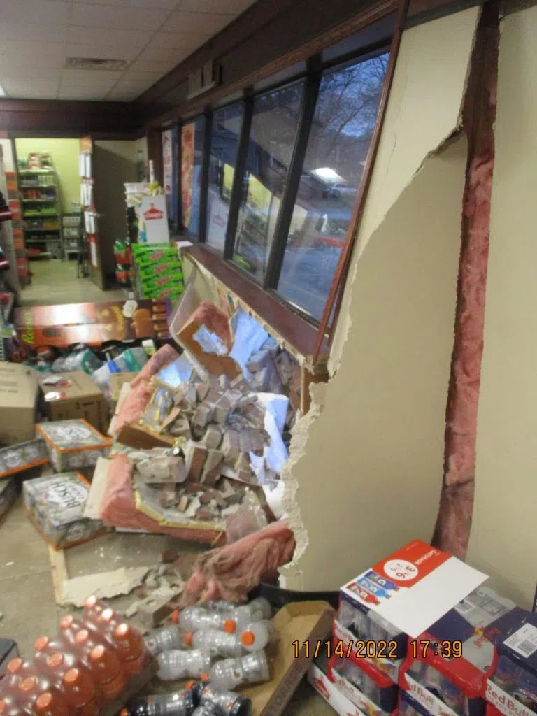 Casey’s General Store sustained approximately $20,000 in damage. Baker’s vehicle sustained approximately $2,000 damage.