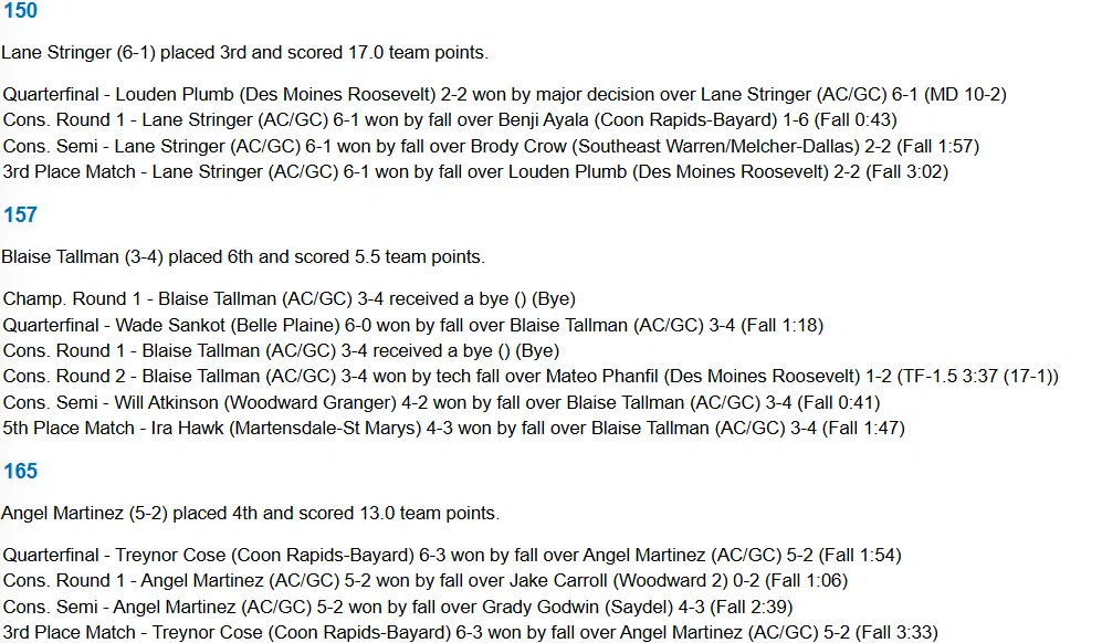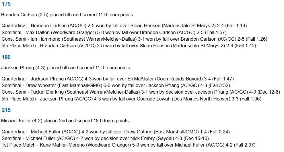 Boys Wrestling Results: Chargers Take Third, Sloss and Cline are Champs