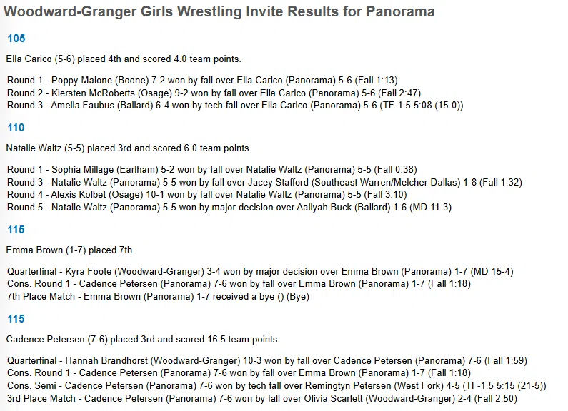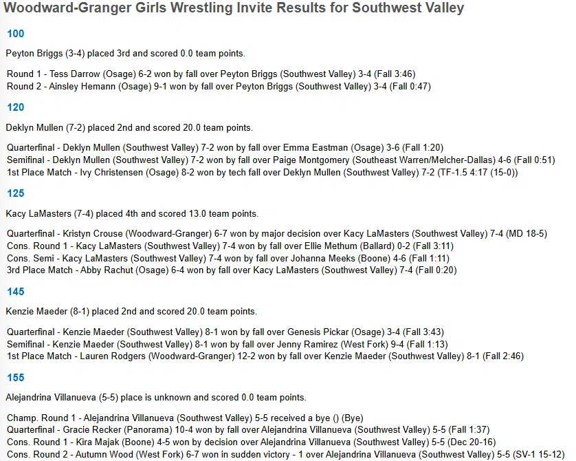 Girls Wrestling Results: AC/GC and Southwest Valley @ Woodward Granger