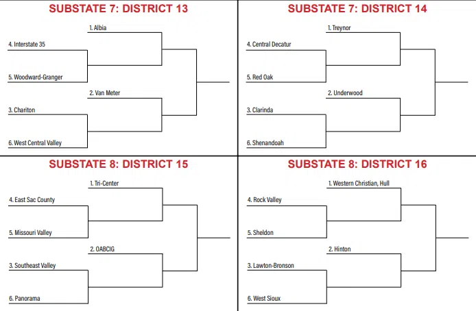 In Class 2A, Tri Center is a number one seed in District #15 and will play the winner of East Sac County or Missouri Valley. Hull Western Christian is the #1 seed in District #16 and in the same Substate as the Trojans.