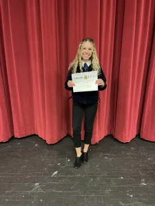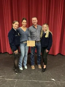 Following the reports, awards were presented. First were the members recognized for earning 10,000 FFA points during their time in the chapter. These points are earned by participating in chapter activities and events. Those recognized for reaching 10,000 points included Mia Kloewer, Lola Comes, and McKenna Sonntag.