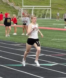 Also for the Trojans, the Shuttle Hurdle won with a season PR of 1:06.71 with Zohie Payne, Layla Meador, Avilyn Killpack and Quincey Schneckloth and set a WIC record. Schneckloth won the 400 Hurdles with a season PR of 1:06.56. The 4×800 relay set a WIC record and PR of 10:00.31 with Schneckloth, Isah Van Arsdol, Reese Dittmer and Sophia Hazen. Van Arsdol won the 800 with a PR of 2:23.89. Meador was 2nd in the 100 Hurdles (PR 16.33) and 3rd in the High Jump; Zohie Payne was 3rd in the 100 Hurdles (PR 16.43); Sophia Hazen was 3rd in the 400.