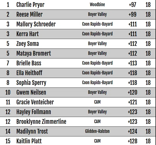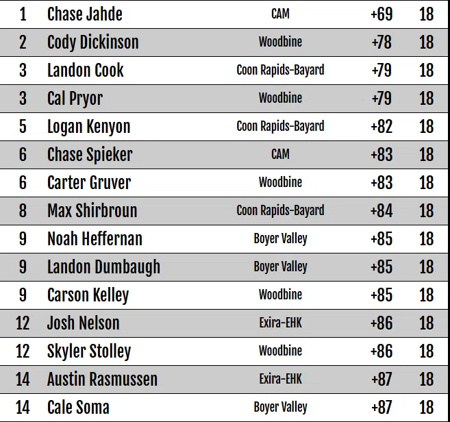 Jahde Wins RVC Golf Tourney; Pryor Wins Girls; Woodbine and Boyer Valley are Team Champs
