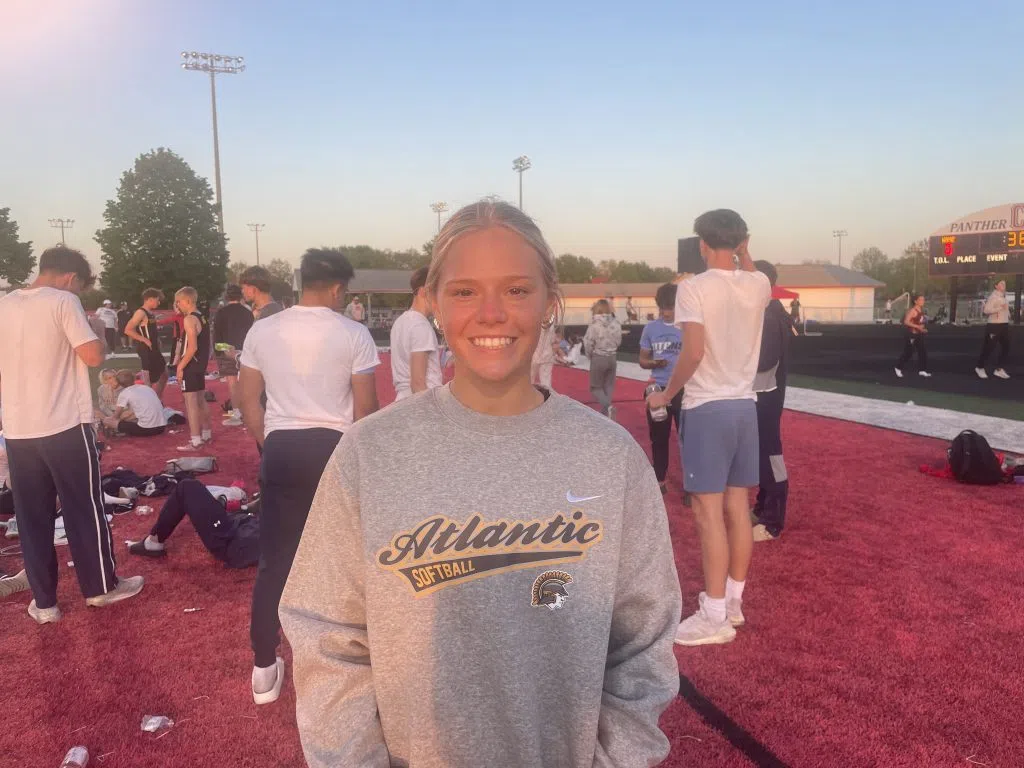 Lila Wiederstein of Atlantic had an outstanding night. The Junior set the Conference meet record in the Long Jump, going 18-01.75. The junior finished second in the 100 and 200 meters, with new personal best times of 12.48 in the 100 meters and 25.78 in the 200, and anchored the 4×100-meter relay team to a third-place finish.
