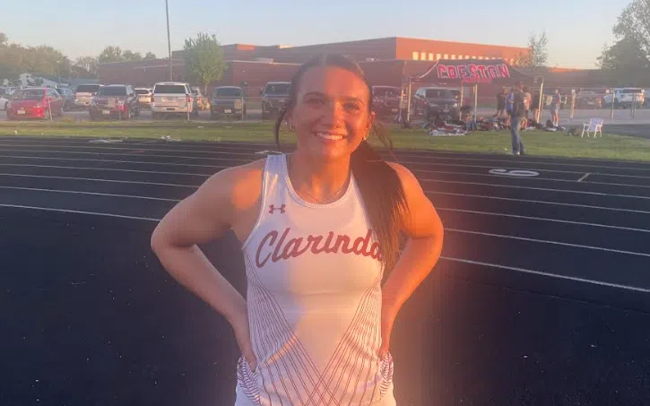 Clarinda finished third with 85 points. Knight’s three golds led the Cardinals, and the 4×100 meter relay finished in second place. Kylie Meier added key points in the Long Jump with a second-place finish, 16-07.75