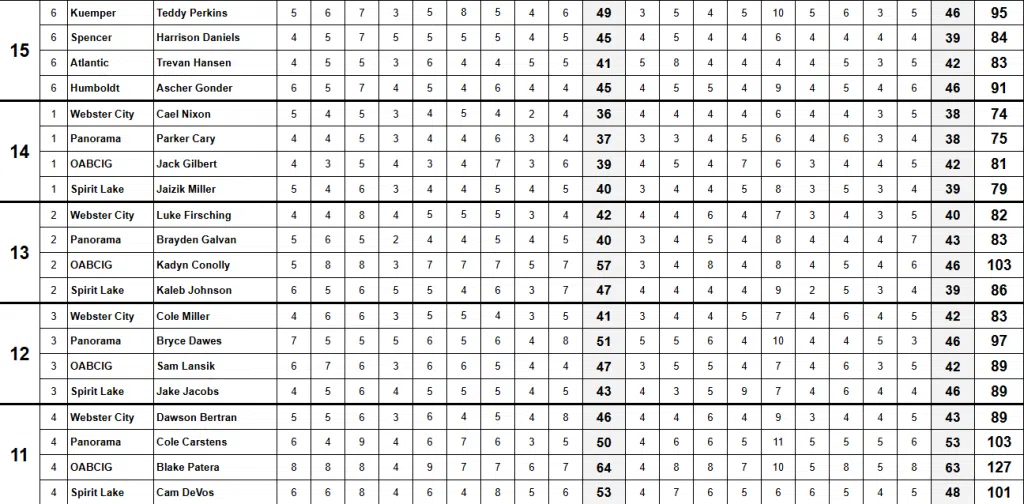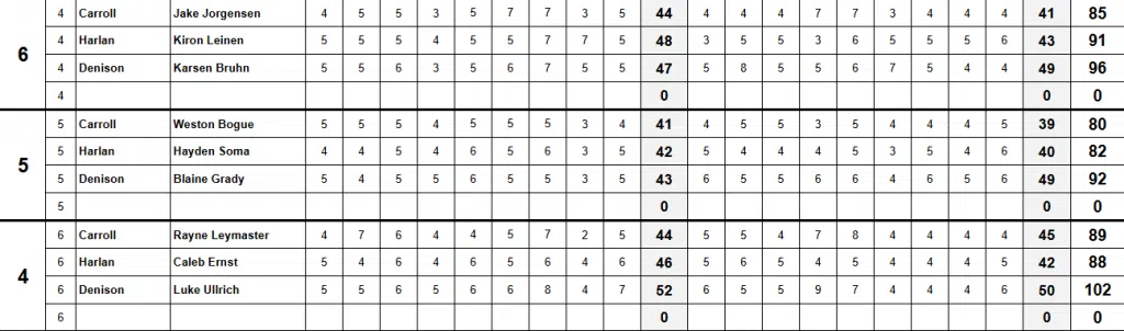 (Carroll)The Atlantic boys’ golf team secured another tournament victory on Saturday, thanks once again to their strong team depth. The Trojans and Humboldt both finished with a team score of 320, sending the title decision to the tie-breaker – the fifth golfer’s score. Atlantic came out on top, with Gage Gross’s 84 edging Humboldt for the win. Hudson McLaren led the Trojans with a 76, followed by Sam Brosam (78), Brady Wood and Trevan Hansen (83 each), Gage Gross (84), and Tristan Hayes (87).