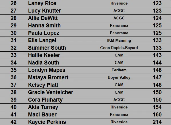 AC/GC was led by Ava Sneller who was 12th with a 111.