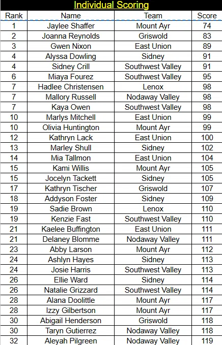 Nodaway Valley’s low round went to Mallory Russell with a 98.