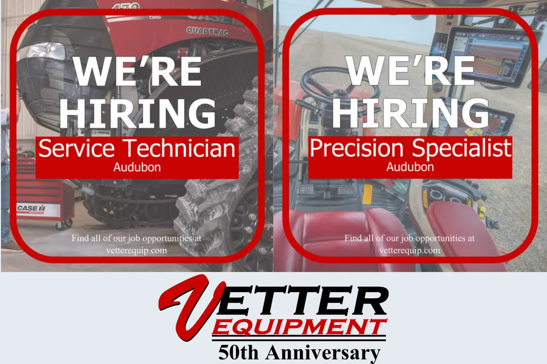 Vetter Equipment in Audubon is growing—and we’re looking for dedicated professionals to join our team. If you’re passionate about agriculture and ready to take the next step in your career, we have two exciting opportunities waiting for you.