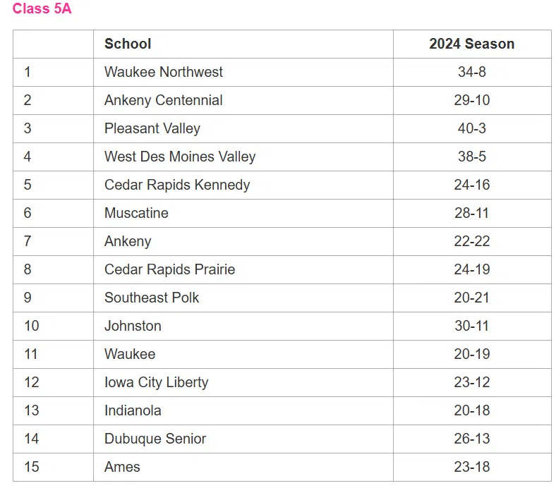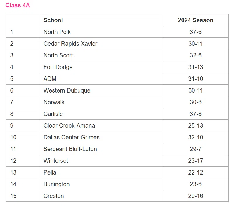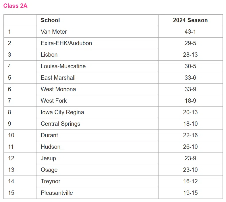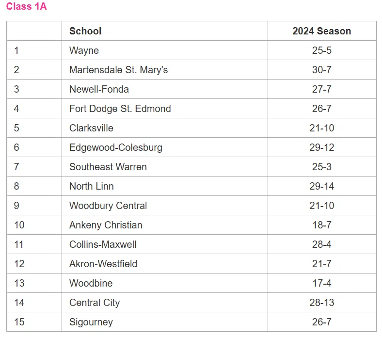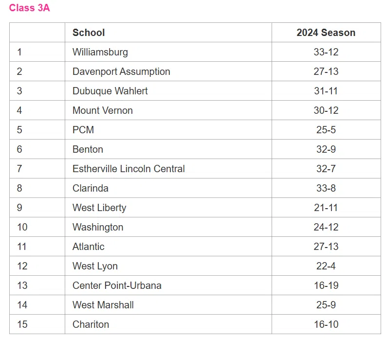 The Iowa Girls High School Athletic Union has released its first softball rankings of the season. Atlantic made the Class 3A rankings at #11. Exira EHK-Audubon is ranked #2 in Class 2A.