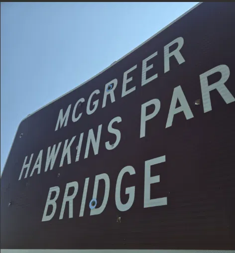 In February 2024, Ken Ossian from the Coburg Alumni Association requested that the bridge be named the McGreer Hawkins Park Bridge. The nearby boat ramp is designated as Carlson Landing.