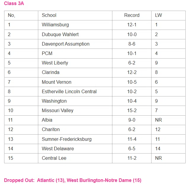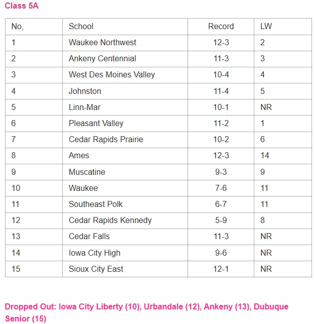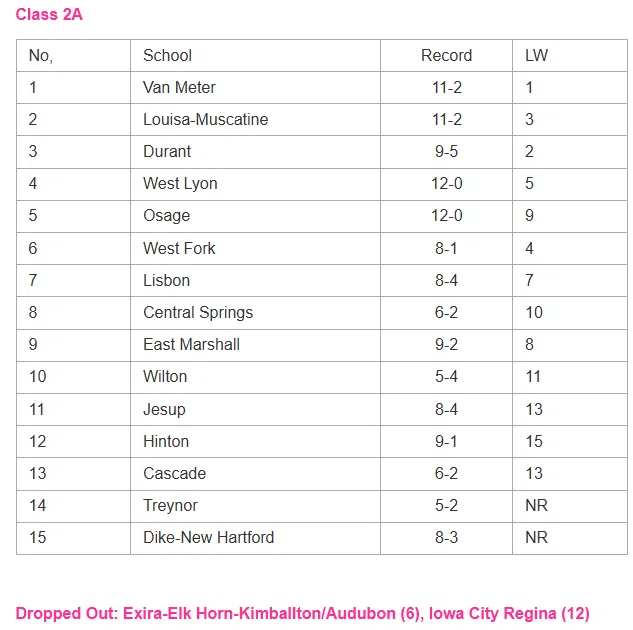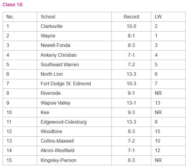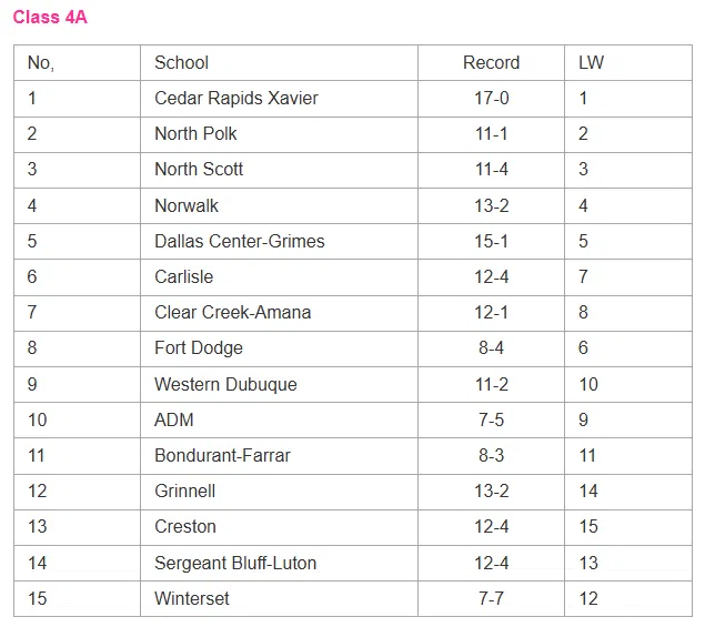 Latest IGHSAU Softball Rankings
