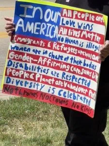 (Atlantic, IA) — Atlantic was part of protests against the federal government on Flag Day. About 250 protesters hit the streets in Atlantic City Park and showed their signs between Chestnut and Poplar Streets. Denise O’Brien of Southwest Iowa Indivisible is not happy with how things are going in this country
