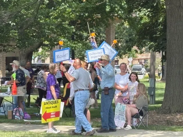 (Atlantic, IA) — Atlantic was part of protests against the federal government on Flag Day. About 250 protesters hit the streets in Atlantic City Park and showed their signs between Chestnut and Poplar Streets. Denise O’Brien of Southwest Iowa Indivisible is not happy with how things are going in this country