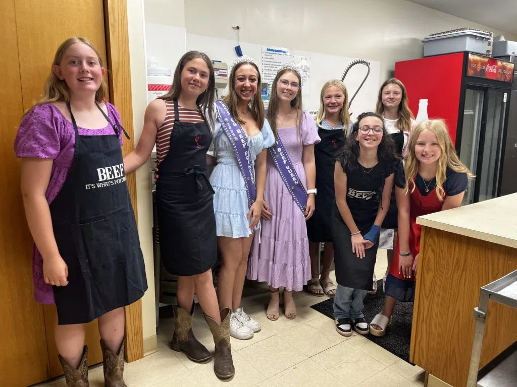 A beef workshop for the Jr. Royalty contest was held on Friday, June 13, at the Cass County Community Building, featuring six contestants. The participants learned about various aspects of beef, including beef breeds, recycling beef, beef animal nutrition, cuts of meat, food preparation, beef by-products, and royalty etiquette. Each contestant was interviewed by the 2022 Beef Queen and current Cass County Fair Queen, Claire Pellett. Beef Queen Jacquelyn Freund and Princess Addie Masker hosted the workshop. Cass County girls entering 6th and 7th grade were eligible for the title. Macy Freund was selected as the Jr. Beef Queen, and Eden Ohms was chosen as the Jr. Beef Princess.
