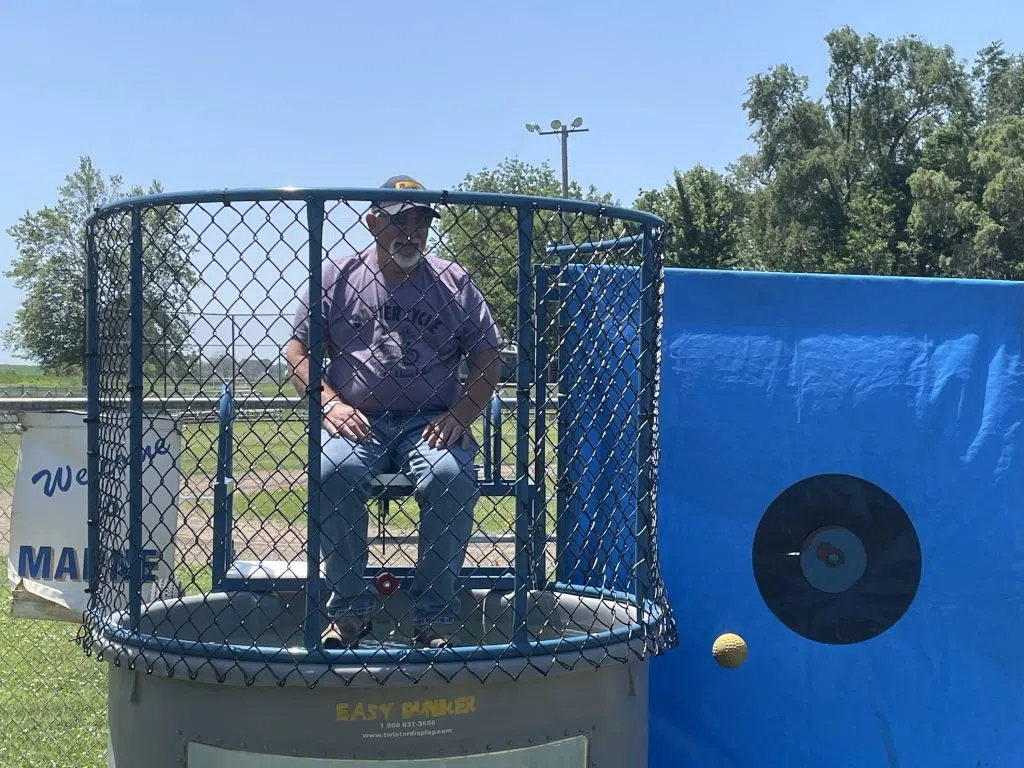 Marne Mayor and longtime businessman Randy Baxter thanked the crowd for braving the wind and heat to attend the celebration. He also spent time in the dunk tank, as part of a fundraiser for the event.