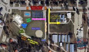 Parking for the event will be at the Cass County Fairgrounds. The parking areas for the pool and splash pad will be blocked off for the entire day. A map with details on parking and event locations is posted below.
