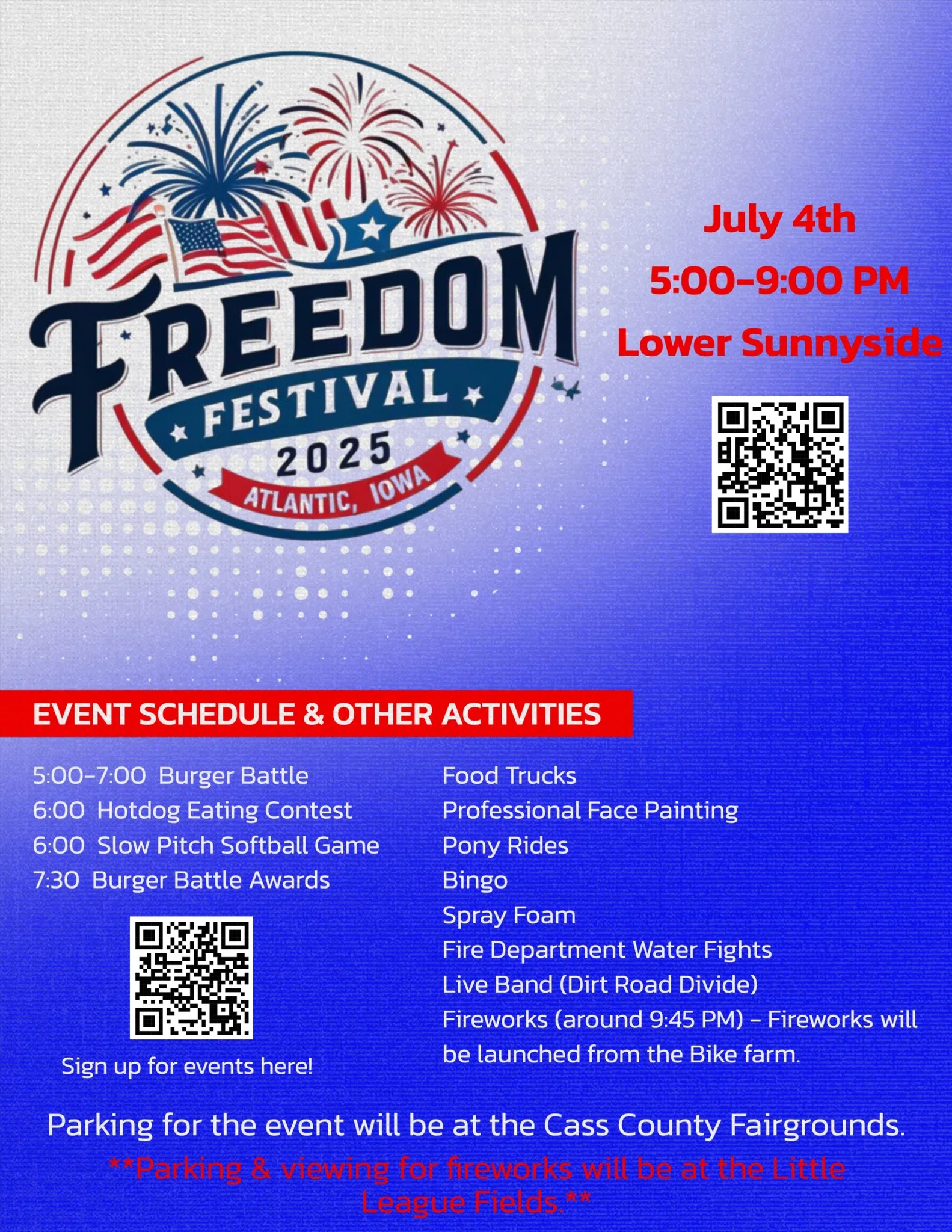 (Atlantic) The Freedom Festival will light up lower Sunnyside Park and the skies above Atlantic on July 4th.