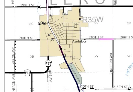 Update: The Audubon County Engineer’s Office says work on 200th street, from 7th Avenue to Kingbird Avenue, has been completed and the road is open to through traffic.
