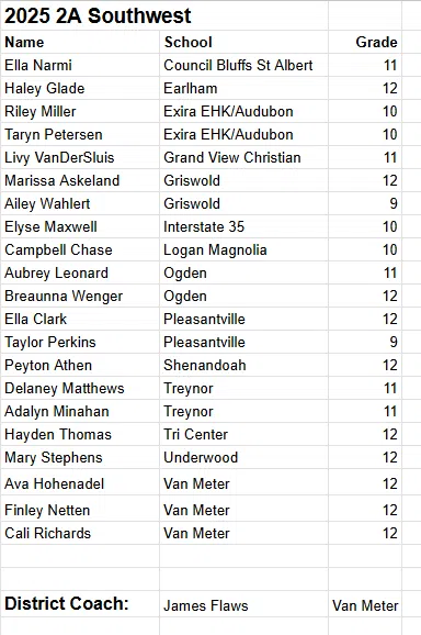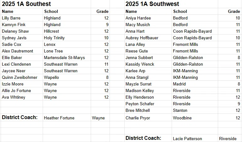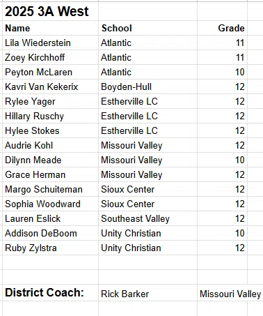 (Area) — Three Atlantic softball players were named All District by the Iowa Girls Coaches Association — Lila Wiederstein, Peyton McLaren and Zoey Kirchhoff. Two players for Exira EHK/Audubon were named All District in Class 2A — Riley Miller and Taryn Petersen. Marissa Askeland and Ailey Wahlert of Griswold CAM were selected. Three Bulldogs were honored All District — Madison Kelley, Elly Henderson and Peyton Schafer while Head Coach Lacie Patterson was the Southwest Coach of the Year.