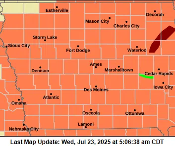 Meanwhile, there is a slight risk for severe weather in northwest Iowa, followed by a marginal risk for the remainder of northern and western Iowa. Damaging winds will be the main threat. Thunderstorm chances return at intervals from Thursday into Saturday. The overall severe weather threat will be monitored in the coming days.