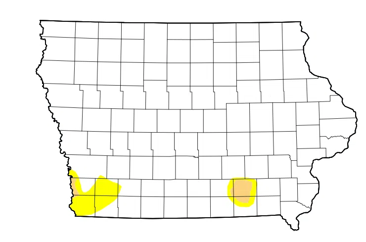 Wapello County in extreme southeast Iowa, and the western border of Mills County are the only counties under a D1 or moderate drought category. Otherwise, abnormally dry conditions remain in Montgomery, Mills, and Fremont counties in southwest Iowa.