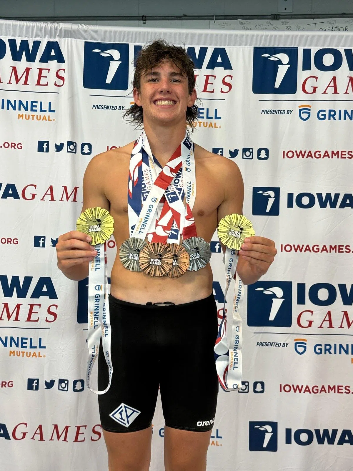 Quist admits the one-hour and fifteen-minute drive to practice is paying off. Recently, the team competed at Southeast Polk, where Quist participated in five events, winning three of them and achieving a personal best time in the 100-yard freestyle. Additionally, he competed in seven events over two days at the Iowa Games a few weeks ago, earning two gold, two silver, and two bronze medals. The gold medals were awarded for his performances in the 50- and 100-yard breaststrokes.