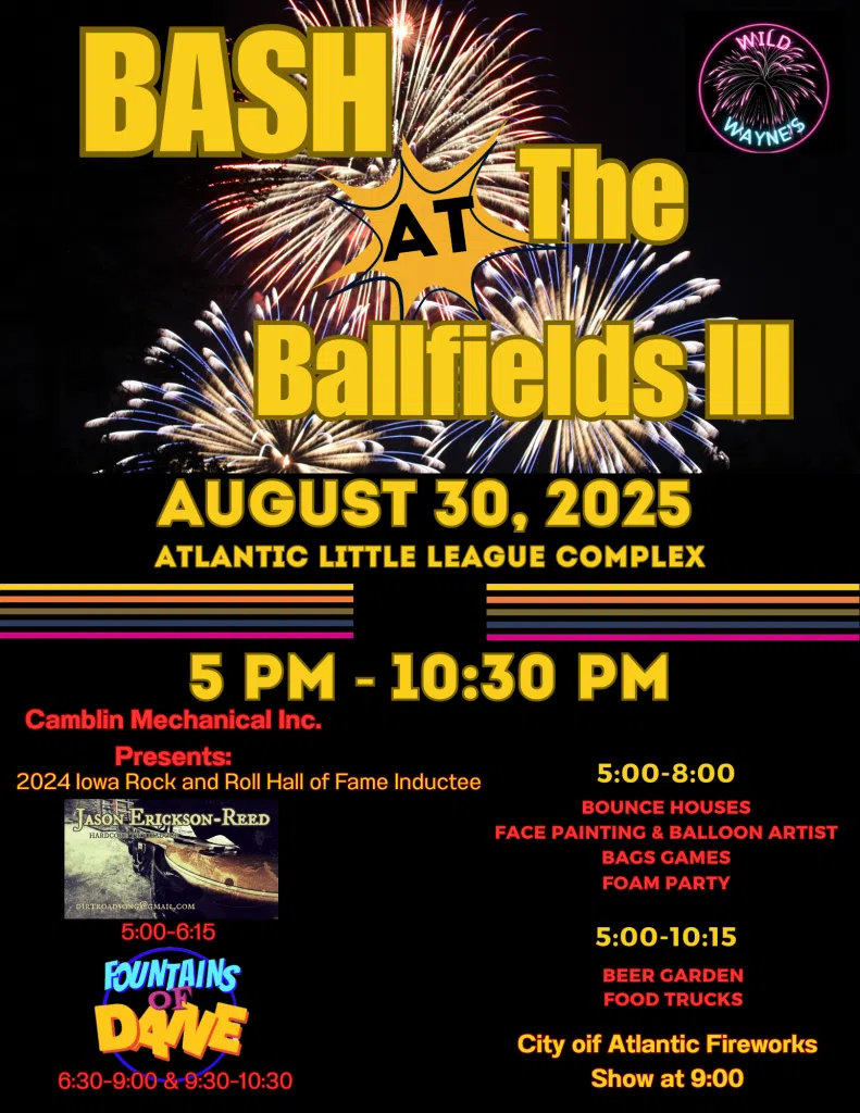 (Atlantic) The 3rd Annual Bash at the Ballfields is set for Saturday, August 30th at the Atlantic Little League Complex.