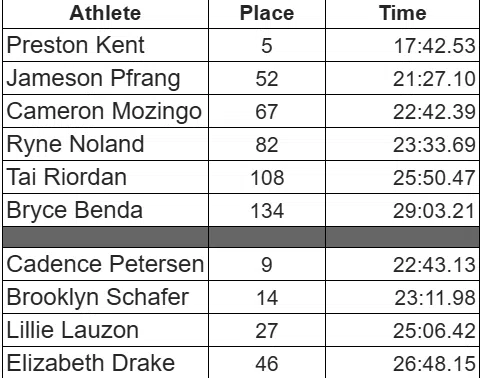 (Gowrie, IA) — On Thursday night, AC/GC opened their cross country season in a meet hosted by Southeast Valley. The Boys finished in 13th place out of 15 teams while the Girls did not have enough numbers to qualify for the team competition. Preston Kent for the Chargers finished in 5th place and Cadence Petersen finished in 9th.