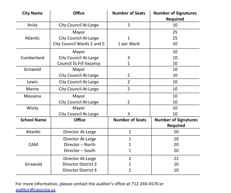 (Cass Co.) The Cass County Auditor’s Office released the final list of candidates for the November 4 City and School Board Elections.