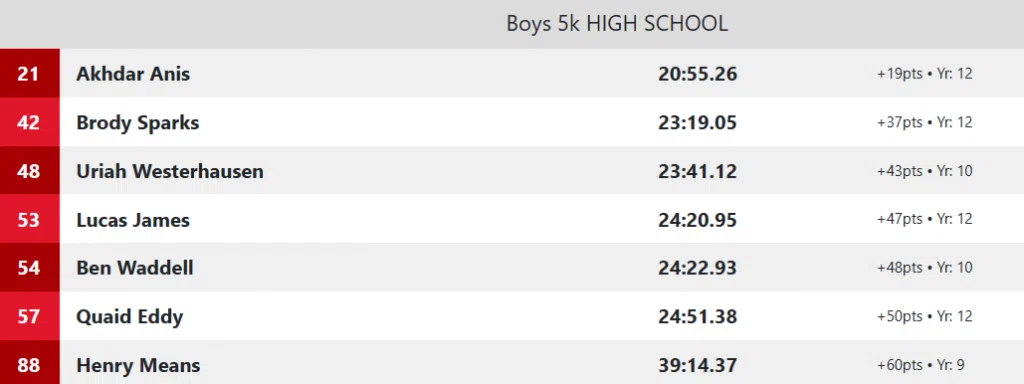 Southwest Valley competed at the meet — no girls competed but the Timberwolves boys finished in 8th place out of 9 teams.
