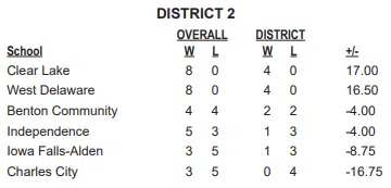 West Delaware visits Clear Lake on Friday night — the winner is the district champion and the loser will be the #2 seed. Benton visits Iowa Falls Alden and Charles City is at Independence. Independence has a good chance at an at large bid — they currently rank #9 in the RPI.