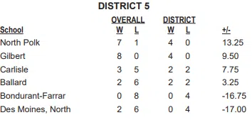 North Polk visits Gilbert on Friday for the district title and the loser will be the #2 seed. The winner of Carlisle at Ballard will have a chance for an at large bid. Bondurant Farrar plays at Des Moines North for pride.