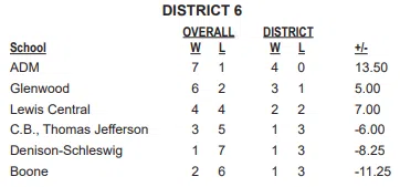 ADM has clinched the district title and hosts Denison Schleswig. Glenwood has clinched the 2nd seed and hosts Boone. Lewis Central is in good shape to make the playoffs as an at large but will need to beat CBTJ to secure that this week.