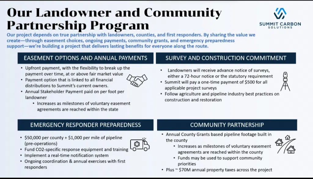(Guthrie Center, IA) — Summit Carbon Solutions is under new ownership and is making presentations to area counties about their CO2 pipeline and Tuesday they were at the Guthrie County Supervisors meeting.