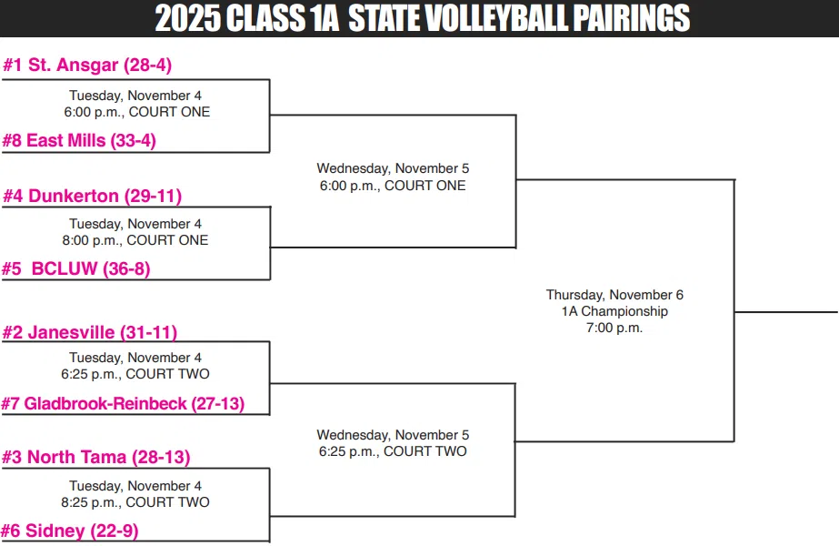 Gladbrook-Reinbeck 3-Springville 0 (25-21, 25-16, 26-24)