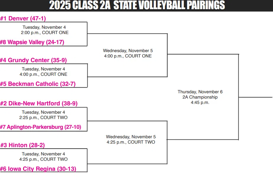 Aplington-Parkersburg 3-Riverside 2 (21-25, 25-21, 22-25, 25-11, 17-15)