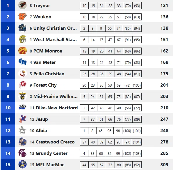 (Fort Dodge, IA) — Treynor was ranked #3 in the state but they took the 2A state title on Friday in Fort Dodge. The Cardinals finished with 121 points ahead of Waukon with 136 and Orange City Unity Christian was third at 138. Top ranked West Marshall was 4th at 4th at 151. Van Meter finished 6th with 168 points.