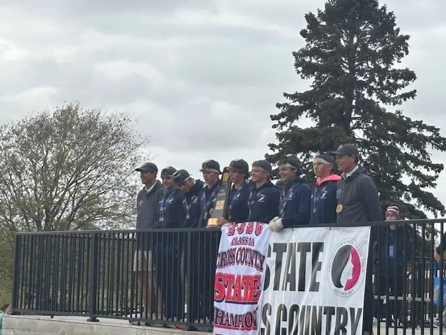 (Fort Dodge, IA) — The Riverside Boys Cross Country team were the favorites at the 1A State Meet and they did not disappoint. The Bulldogs took home their first cross country title in school history, placing 4 runners in the top 15 and won the title by 15 points over Lake Mills. Senior Dawson Henderson finished in 5th place (16:25.8), Junior Owen Fenner was 11th (16:40.8); Sophomore Eli Hudnall ran a PR time of 16:44.4 and was 13th; Senior Brody Henderson got on the deck in 14th (16:45.5).