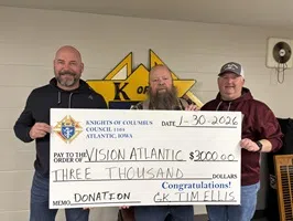 Knights of Columbus Donate to Vision AtlanticAdams County Bridge to Close March 6thManilla Woman Sentenced to Federal Prison for Tampering with Vials of Narcotic Pain MedicationOrient Man Charged After Admitting to Setting House FireOne Transported After Vehicle Slides Off Icy Guthrie County RoadAdel Man Injured in Guthrie County Motorcycle CrashMoore Cites Per-Student Spending in School Funding DiscussionUnion County Woman Arrested on Theft and Drug Possession ChargesPreparations for Historic O-M Campus Transition and Repurposing Underway"Transforming Lives: Volunteers Needed for KidSight Vision Screenings in Iowa"Montgomery County Woman Arrested For AssaultAtlantic Opens Postseason Play at No. 2 Sergeant Bluff-Luton: Coverage on KS95.7 F.M.ISP Snowstorm Incident, Ag Bill Progress, Democratic Primaries Under ScrutinyMonday's Boys High School Basketball Playoff ScheduleAtlantic High School Seeks Volunteers for IHSSA District Individual Speech Contest Feb. 28