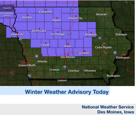 (Des Moines) Snow showers and snow squalls are expected today, with possible impacts to both the morning and evening commutes. Narrow bands of intense snow squalls may produce near-blizzard conditions...