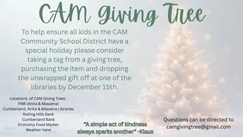 (CAM) Residents in the Cumberland, Anita and Massena communities have the opportunity to give back this holiday season with the CAM Giving Tree. Sara Young, with the Anita Public Library, said tags ar...