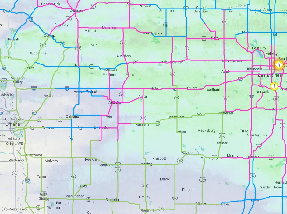 (Atlantic, IA) -- Road conditions are just starting to worsen in Atlantic and the surrounding area. Snow has been falling and covering roads -- Highway 71 has just become completely covered just south...