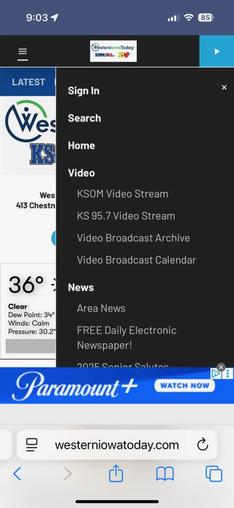 From the westerniowatoday.com website just use the menu and select KS 95.7 Video Stream
