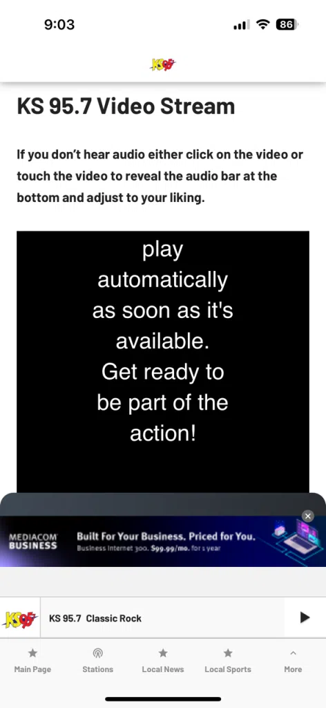 Simply click on KSWI Video and the screen will pop up. You may have to adjust the volume to your liking as some phones will default to no audio.